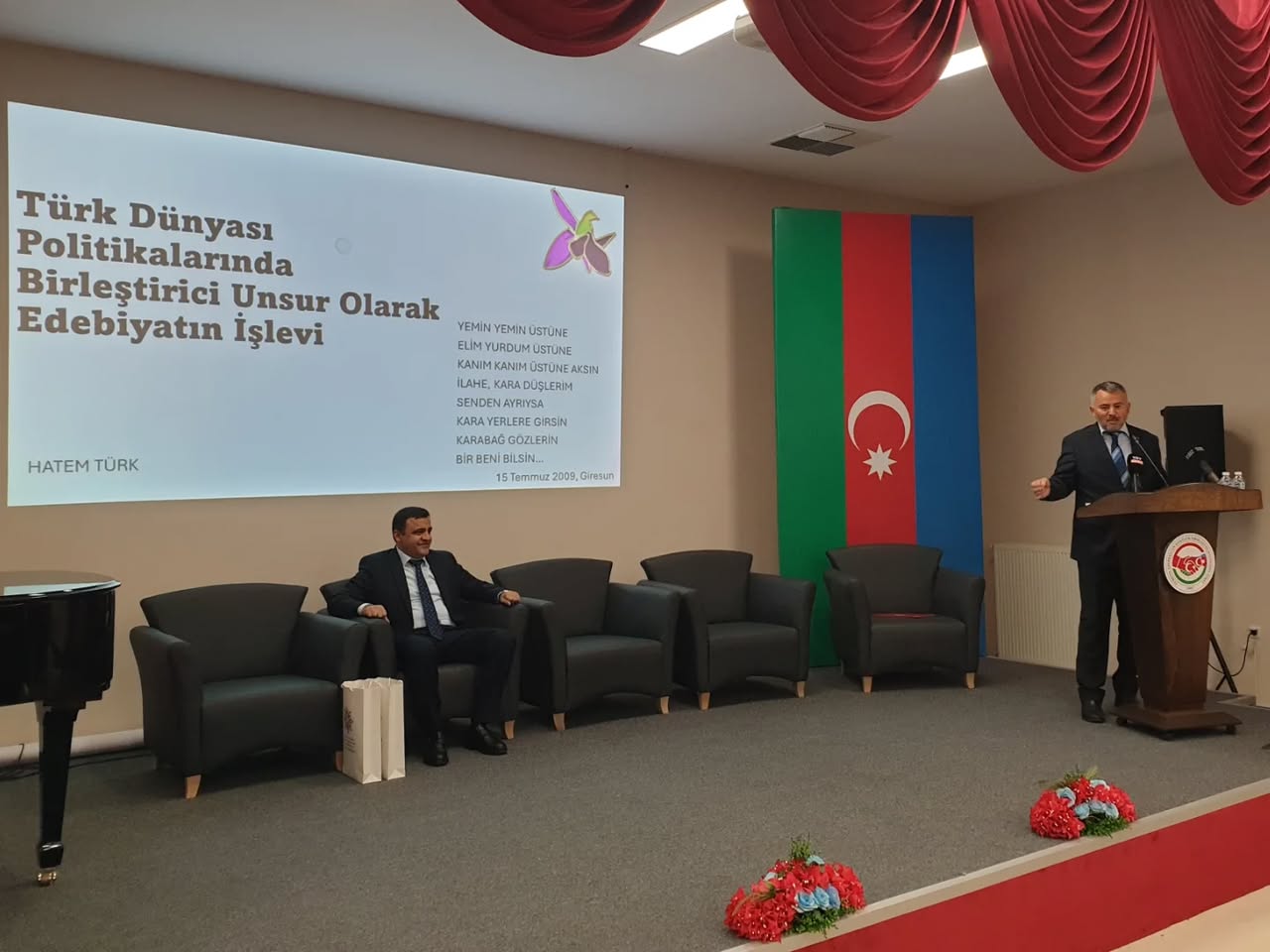 Etkinlikte konuşmacı olarak yer alan Giresun Üniversitesi'nden Profesör Hatem, her milletin dünyada kültürü, sanatı ve edebiyatıyla tanındığını vurgulayarak, Türk dünyasının ve Türk halklarının ortak edebiyatının modern çağda sadece aramızda kültürel ve bilimsel bir köprü olmakla kalmayıp, bu zengin değerleri dünyaya tanıtma açısından da önemine değindi.